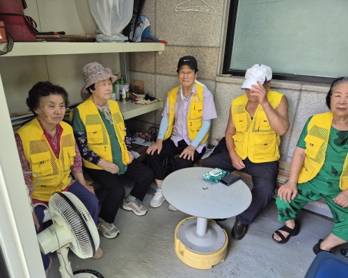 학교 방학중에도 열심히 활동하시는 어르신들 모습입니다.